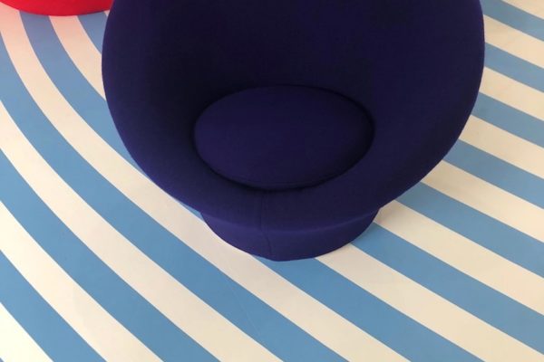 una scenografia dell’India Mahdavi presso il Cercle Naval di Toulon. Più di sessanta pezzi eccezionali del Centre Pompidou sono riuniti.