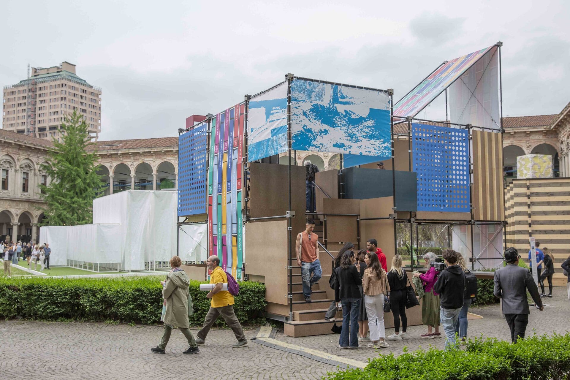 L’installazione “I am what I throw away”, presentata da NABA alla Milan Design Week/Fuorisalone 2024 e curata da Italo Rota e Claudio Larcher con la collaborazione di AMSA e degli studenti dell’Area Design, porta in scena il concetto di design circolare. Realizzata da Xilografia e ospitata nel Cortile d’Onore dell’Università Statale di Milano per la mostra-evento INTERNI Cross Vision, l’opera riprende le “living structures” di Ken Isaacs: moduli-matrice che permettono di costruire spazi abitabili a basso costo e ridotto impatto ambientale. Utilizzando esclusivamente materiali di recupero e soluzioni innovative, l’installazione coniuga tradizione artigianale e sperimentazione industriale per lanciare un messaggio chiaro: sostenibilità e condivisione possono (e devono) guidare ogni fase del progetto, trasformando gli scarti in risorse e il gesto del “gettare” in un atto di consapevolezza.