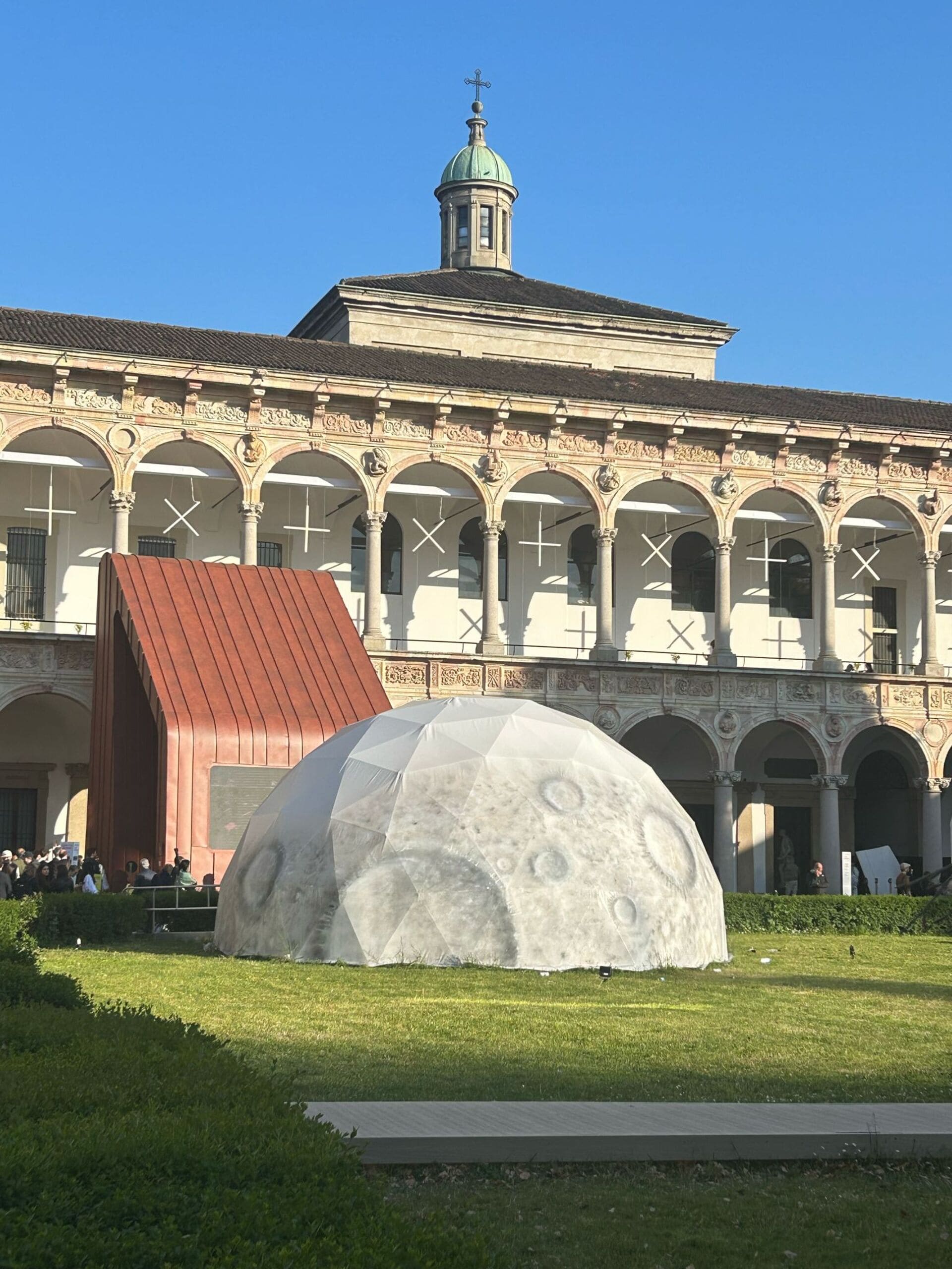 Realizzata da Xilografia, l’installazione “Design for the Moon” anima il Cortile d’Onore della Statale durante la Milano Design Week 2025. Curata da Claudio Larcher e Luca Poncellini con NABA e Arizona State University, la cupola geodetica evoca suggestioni lunari. Poltrone Sacco e utensili 3D-printed degli studenti trasformano lo spazio in un “salotto” extraterrestre. Video e modelli di space-architecture mostrano scenari abitativi sostenibili per il futuro sulla Luna.